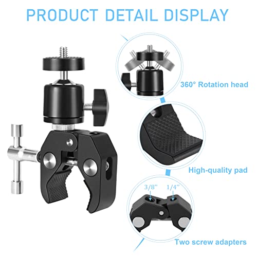 Ampia applicazione: Si collega a supporti come treppiedi, sponde di tavoli, bracci magici, ecc., si collega a fotocamere DSLR, flash, luci a LED, monitor video, ecc.