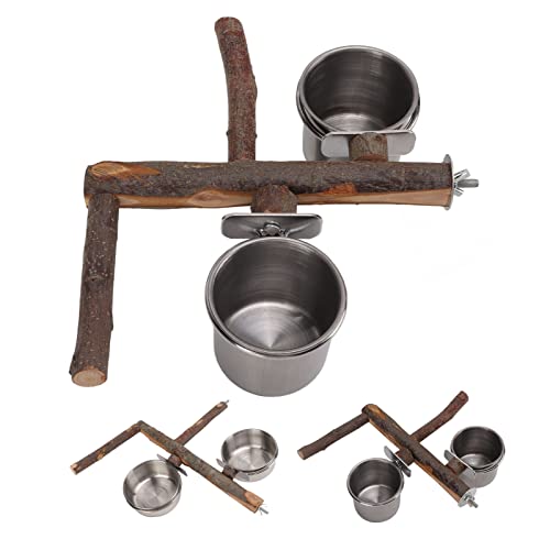 Trespolo per Uccelli,trespolo per pappagalli, con Ciotola per Alimenti in Acciaio Inossidabile, trespolo per pappagalli in Legno, Set di mangiatoie per Gabbie per Uccelli(Large)