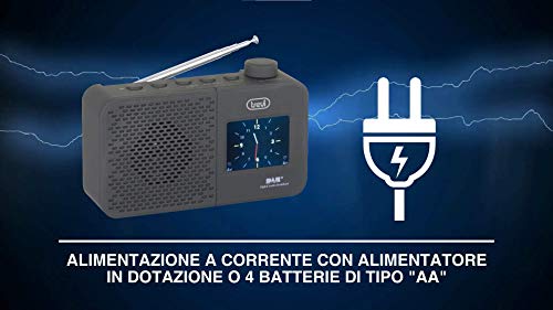 Trevi DAB 795 R Radio con Ricevitore Digitale Dab/Dab+ e Fm con Rds, Grande Display LCD a Colori 2.4", Due Sveglie Programmabili, Funzione Orologio, Alimentazione a Corrente e a Batterie