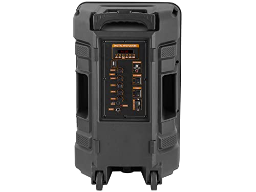 Display LED rosso - Disco Light led multicolor - Trasporto facilitato con sistema Trolley a maniglia estendibile e doppie maniglie laterali - Telecomando Full control - Predisposto per installazione e fissaggio su supporti a palo da 40mm