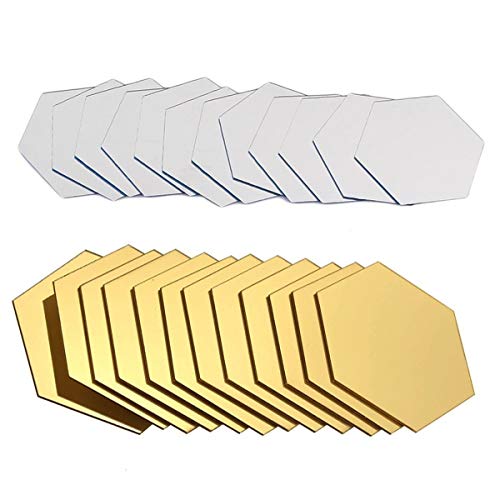 Triamisus Adesivo da Parete 12 Pezzi Adesivo da Parete a Specchio Stereo Esagonale Adesivo da Specchio Autoadesivo Rimovibile Impermeabile Adesivo da Cucina per Bagno di casa - Oro 40x34x20mm