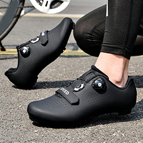 Triamisus 1 Paio di Scarpe da Ciclismo Scarpe da Bici da Strada Unisex Sneaker da Equitazione Assorbimento degli Urti Scarpe da Bicicletta per Bici da Esterno con Blocco a Pedale - Nero 43