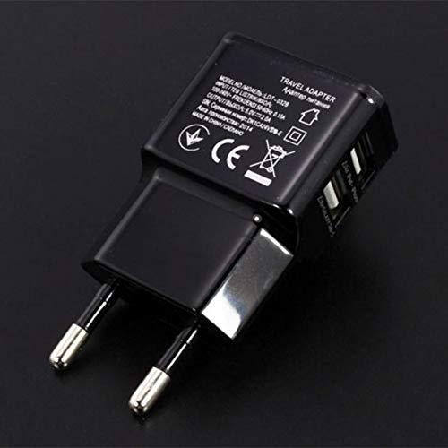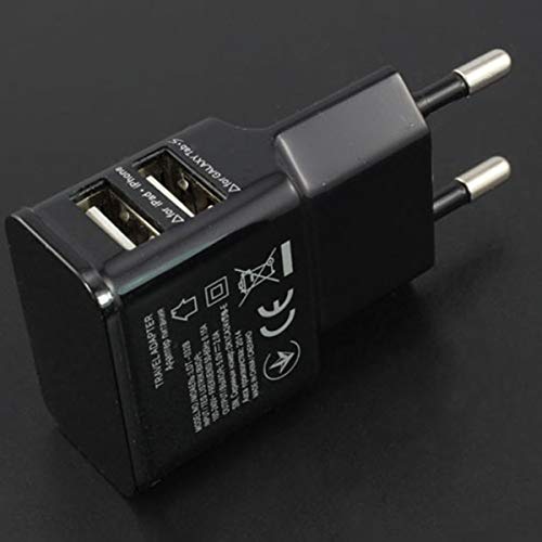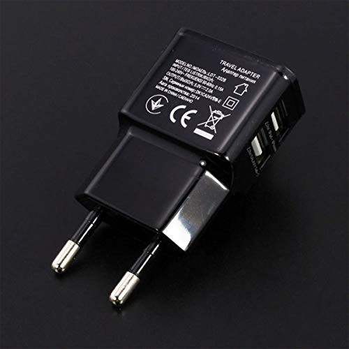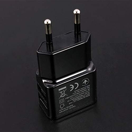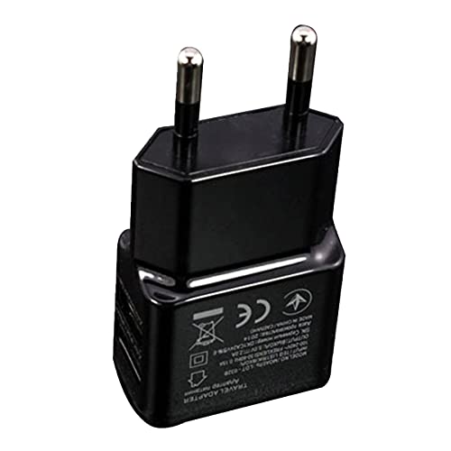 Triamisus 1A Portatile Dual USB Power Adapter Caricabatteria per Cellulare Presa elettrica Adattatore per Caricabatterie da Viaggio Smart Matching per Smartphone - Nero EU