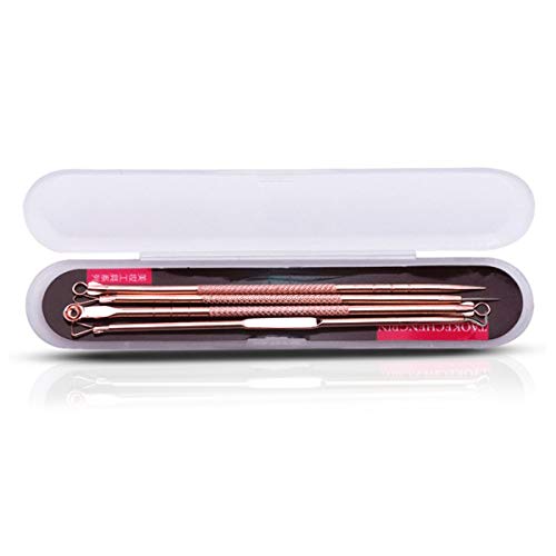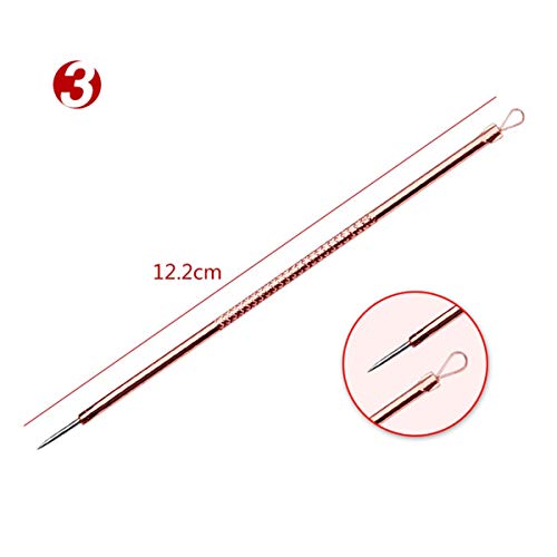 Triamisus Ago per Rimuovere l'acne 4 Pezzi/Set Professionale Portatile Stile Diverso a Doppia Testa ago per rimozione di Punti Neri brufolo Set di Kit di Bellezza per Salone di Acne - Oro Rosa