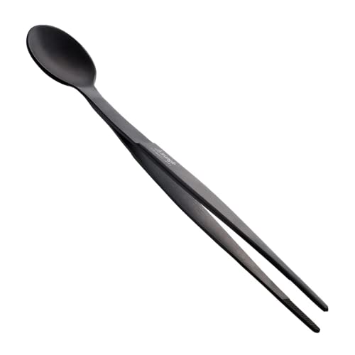 Triangle 56 493 17 01 - Cucchiaio da prova, con pinzetta, colore: nero con pinzetta, cucchiaio, pinzetta da cucina, pinzetta da cucina, pinzetta per filatura, pinzetta per fondo, pinzetta Gourmet