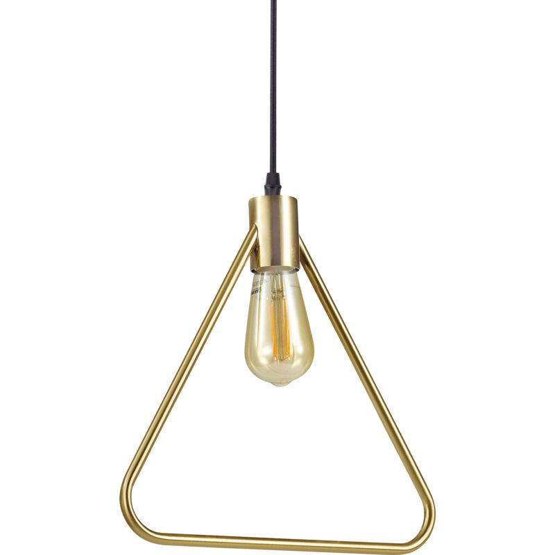 Rosone e struttura decorativa interamente in metallo rifinito ottone satinato. Cavo in tessuto nero. L 33,5 x H min 47 / max 153,5 x P 12 cm E27 max 1 x 70W IP 20