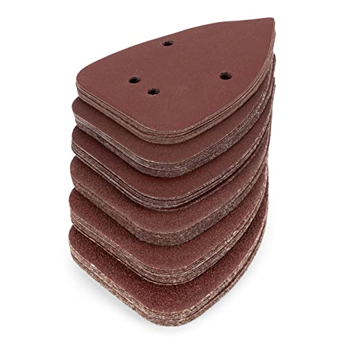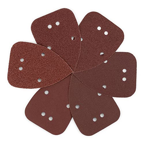 Triangoli Abrasivi Delta │ 120 pezzi │ 4 fori │ 96 x 136 mm │ Mixpack (20 x grana 40/60/80/120/180/240 ciascuno) │ per levigatrici delta │ Fogli Abrasivi │ Abrasivi Triangolari │ Carta Abrasiva