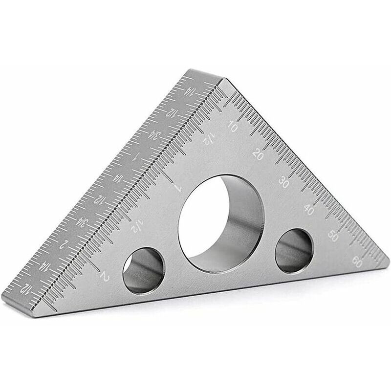 Materiale di alta qualità - Questo righello per la lavorazione del legno è realizzato in lega di alluminio di alta qualità, che è forte e durevole, non si danneggia facilmente, resistente alla corrosione, di alta qualità, di alta qualità e può essere usato per molto tempo. p> 【Grande design del foro centrale】 Il grande design del foro centrale consente alle dita di tenere o fissare questo righello sul pezzo. Facile da installare, trasportare o spostare senza danneggiare i fragili triangoli. 【Facile da usare】 Righello triangolare per un controllo dell'angolo rapido e semplice. La scala è chiara, precisa e di facile lettura. La base più ampia offre una presa stabile. Facile e comodo da impostare, maneggiare o spostare senza danneggiare il fragile triangolo. 【Prestazioni precise】Uno strumento indispensabile nella tua cassetta degli attrezzi, quando devi tagliare un angolo preciso, è utile e lo farà ti fa risparmiare un sacco di tempo e fatica a misurare gli angoli e tagliare rapidamente.
