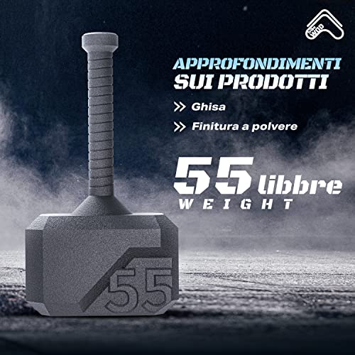 Pesato per il vostro allenamento: Il kettlebell a martello è costruito per adattarsi alle vostre esigenze di allenamento e di abilità. Misura 20,3 x 14 x 36,8 cm con una lunghezza della maniglia di 21,6 cm. Costruite un allenamento completo con il kettlebell, con un peso di 24,9 kg o 25 kg.