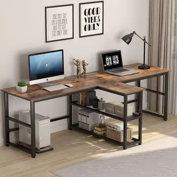 Tribesigns 94.5 inch Computer Desk, Extra Long Two Person Desk with Storage Shelves