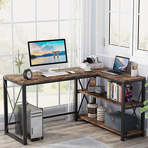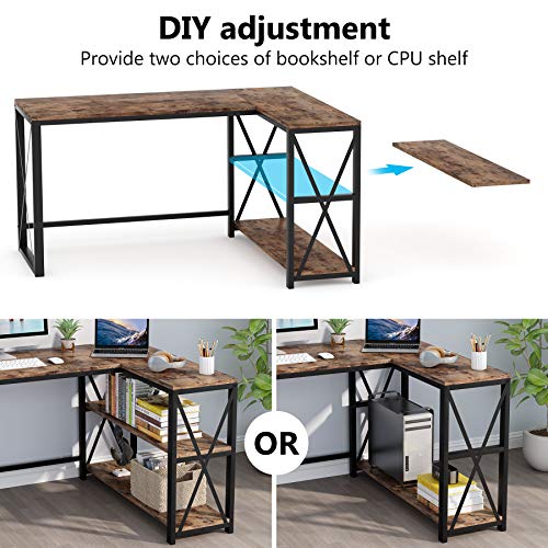 Tribesigns Scrivania da 129,5 cm a forma di L con ripiani, scrivania angolare per computer a forma di L con 2 ripiani, tavolo da lavoro per studio e studio