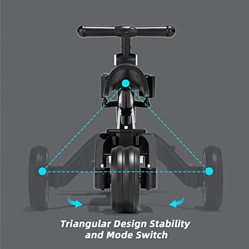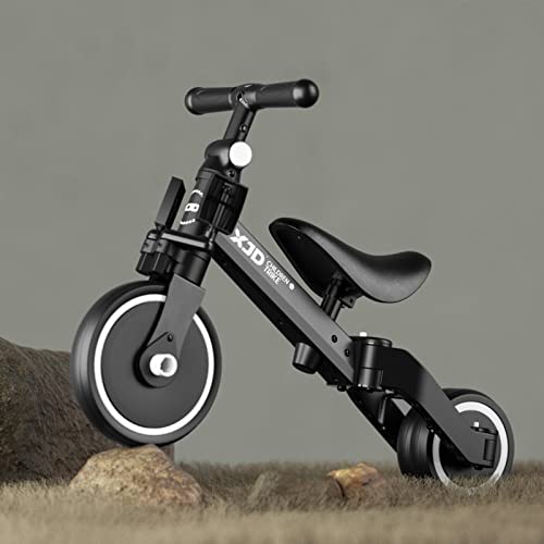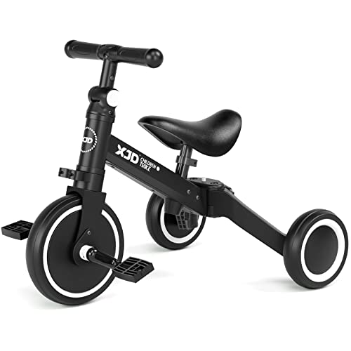 XJD Triciclo 3 in 1 per bambini e ragazze da 10 a 36 mesi senza pedali per bambini con regolabile sedile manubrio e pedali smontabili 1 anno regalo di compleanno (3 en 1 - Clásico, Nero)