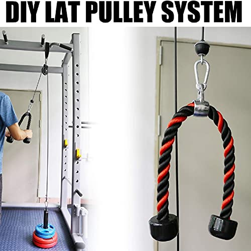 SUPER FORTE: La nostra corda per tricipiti da palestra è fatta di una resistente treccia di nylon spessa con tappi di gomma durevoli e attacchi in metallo cromato. Può essere attaccato a qualsiasi sistema di fitness universale per più allenamenti, facile da usare e rimuovere, funziona con molti tipi di attrezzature per il fitness, ed è uno degli accessori universali per l'allenamento fitness.