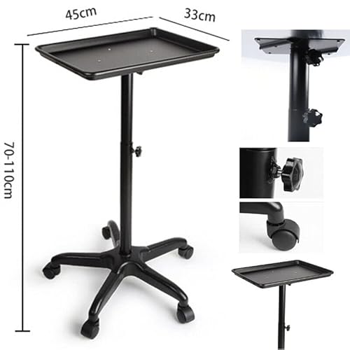 TRIEBAN Vassoio da salone per tatuaggi, vassoio da salone, carrello in alluminio, attrezzatura su ruote e regolabile in altezza per auto dentale, parrucchiere (nero)