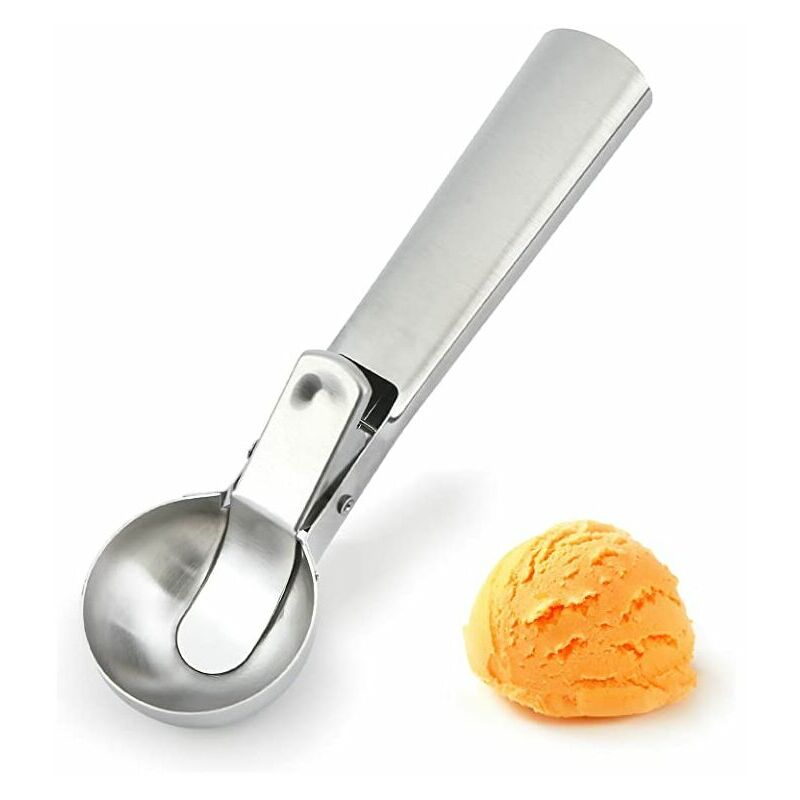 COSA OTTIENI - Riceverai 1 paletta per gelato con grilletto in acciaio (il manico è lungo 5,25, largo 1,2, spesso 0,8, con una testa rotonda di diametro 1,9) SUPER FACILE DA USARE - RISPARMIA TEMPO PULIZIA: Tutto quello che devi fare è gettare il cucchiaio in lavastoviglie o semplicemente risciacquarlo. DUREVOLE E LAVABILE IN LAVASTOVIGLIE - Tutte le parti sono in acciaio inossidabile 430 per uso alimentare e non tossiche, lavabili in lavastoviglie senza sporco o ruggine. Il manico è ben lucidato e ha una finitura liscia senza bordi ruvidi o taglienti. Manico ergonomico: l'area dell'impugnatura è progettata per una facile presa. Versatile: il nostro gelato in acciaio Le palette sono adatte per una varietà di delizie congelate come gelati, coppe gelato, sorbetti e frozen yogurt. Non solo per il gelato, ma l'utensile perfetto per raccogliere meloni e altra frutta, farcire peperoni, cuocere cupcake, muffin, pancake, pasta per biscotti, burro e altro ancora.