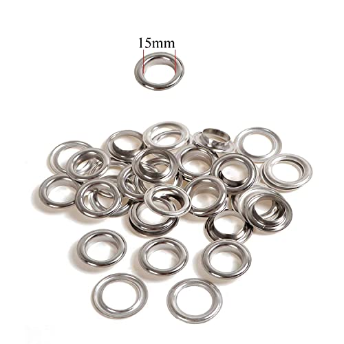 Trimming Shop 15mm Ottone Occhielli, Anti Ruggine & Durevole Anelli di Tenuta con Rondelle per Fai da Te Piscina Cover, Yoga Tappeto, Vinile Banner, Tela Cerata, Artigianato Progetti - Argento, 15mm