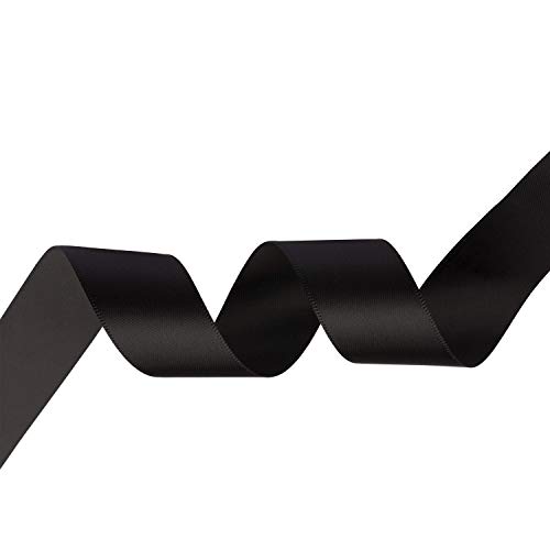 Trimming Shop - Rotolo di Nastro in Raso di Poliestere a Doppia Faccia da 25 mm x 25 Metri Nero per Tessuti, Creazioni Fai da Te, Imballaggio, Fiocchi, Confezioni Regalo e Decorazioni Nuziali