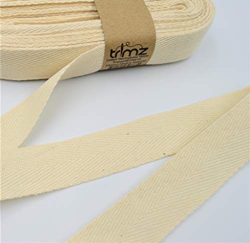 Trimz - Nastro 100% cotone a spina di pesce, naturale, 25 mm x 5 m