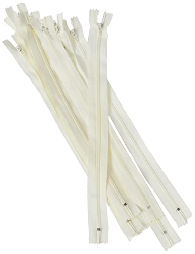Trimz 30 cm (~ 30,5 cm) One Way End Stop Zip con Denti da 4 mm, 10 pz, Poliestere, Crema, 30 x 4 x 1 cm