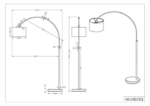 Trio 461100102 Living Lighting Arco Lampada da Terra, Metallico, Nero, metallo