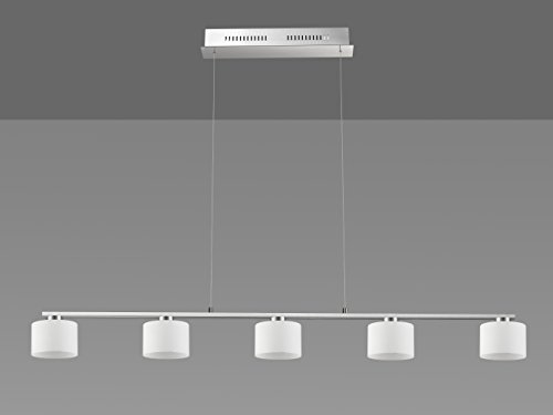 Trio Alegro Lampada a Sospensione, 5 LED, SMD, Altezza Regolabile, Dimmerabile Tramite Interruttore, 3000 K, 630 Lm Integriert, 6 W, Nickel Opaco, 12 x 130 x 160 cm