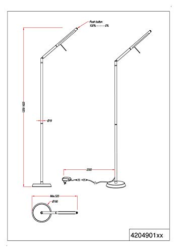 Trio Leuchten Trio 420490107 Lampada LED da Terra in Filigrana, Nichel Opaco 6 W