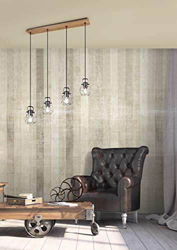 SLV MADRAS - Lampadario a sospensione a 4 luci, in metallo color argento anticato con copertura decorativa in legno
