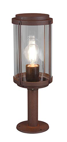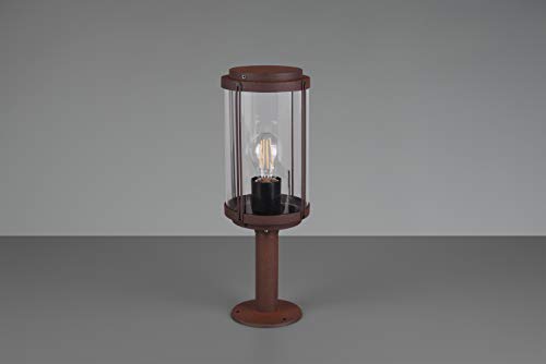 Lampada da esterno Tanaro in alluminio pressofuso color ruggine e plastica trasparente.