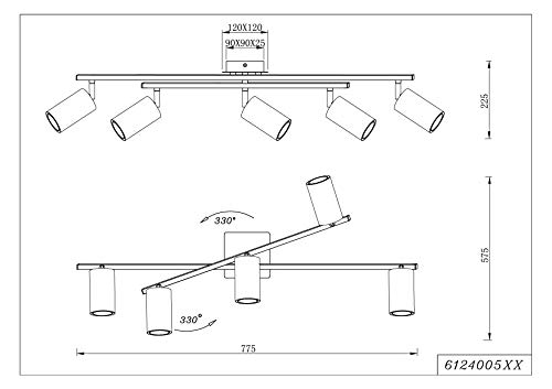 La barra centrale è girevole, inoltre i faretti sono girevoli e orientabili, in modo che la lampada possa essere utilizzata in modo flessibile