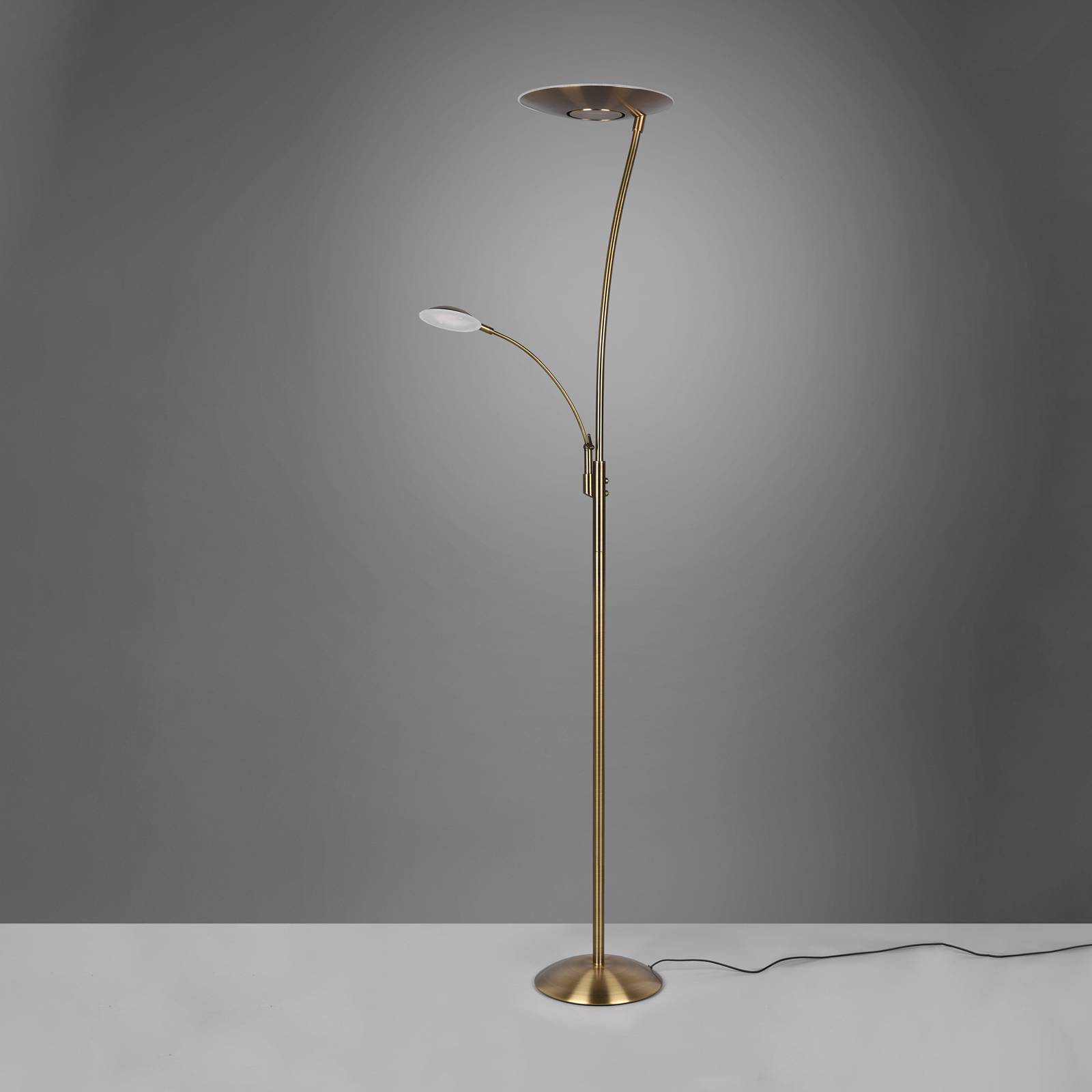 Confortevole lampada da terra a LED Granby con luce di lettura a LEDLeggera, la lampada da terra a LED Granby si distingue per il suo design elegante e senza tempo che valorizza qualsiasi interno. Per quanto riguarda l'illuminazione, Granby è multifunzionale: le due sorgenti luminose possono essere attivate separatamente, si possono impostare tre temperature di colore e la luce può essere regolata in modo continuo. Inoltre, Granby è dotato di una funzione di memoria che garantisce che un'impostazione, una volta selezionata, venga mantenuta anche dopo la riaccensione dell'illuminazione.