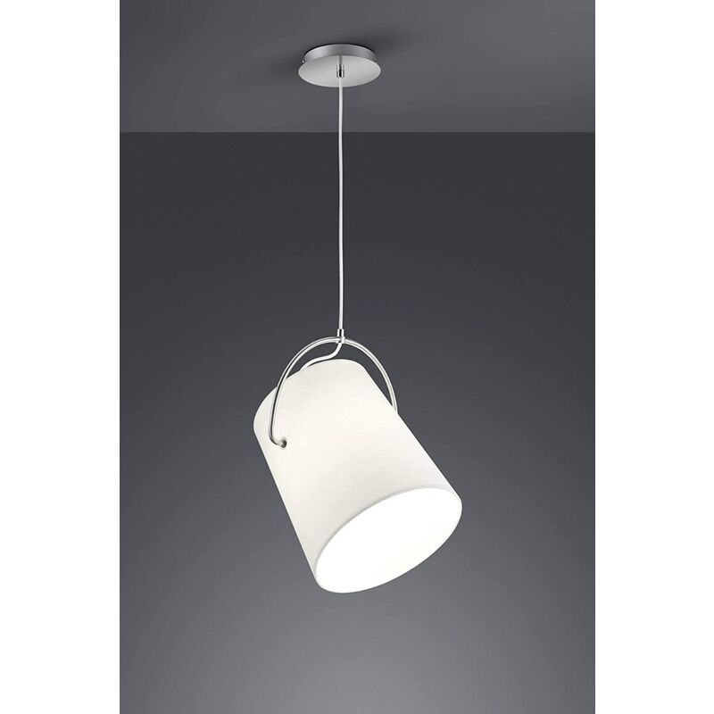 TRIO - SOSPENSIONE MERAN CON PARALUME IN TESSUTO BIANCO 1XE27 60W Lampadario a sospensione meran a 1 luce, in nichel opaco, con paralume in tessuto, colore bianco Lampadina esclusiva;