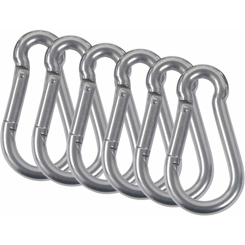 Materiali: Il nostro moschettone è realizzato in acciaio inossidabile. Pertanto, è elegante, resistente, leggero e pratico, non preoccuparti che il moschettone sia troppo pesante, è un ottimo strumento per escursionisti, campeggiatori, fotografi o chiunque porti una borsa. Il moschettone può essere riposto direttamente nella borsa della scuola o nella valigetta Quantità M5: 6 PZ. Taglia: moschettone M5, lunghezza: 1,96"/50 mm, spessore: 0,18"/4,57 mm, diametro del diametro dell'apertura del moschettone: 0,52"/13,2 mm, peso moschettone 6 pezzi: 95,5 g Caratteristica: questo moschettone a molla in acciaio inossidabile è dotato di un cancello a molla che consente di fissarli in modo rapido e sicuro a un'ampia gamma di punti di attacco. Funziona senza intoppi rispetto al cancello a molla, è facile attaccare oggetti importanti a uno zaino o cintura, ecc. Utilizzo: Questi moschettoni a molla sono ideali per molte applicazioni quotidiane. Che si tratti di un portachiavi o per attaccare