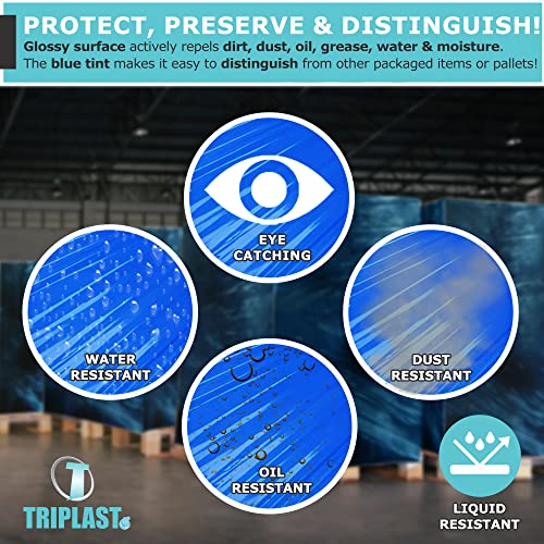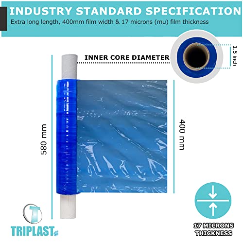 Triplast, pellicola trasparente elasticizzata, nucleo esteso, 400 mm x 250 m, confezione da 6 pezzi, colore: blu
