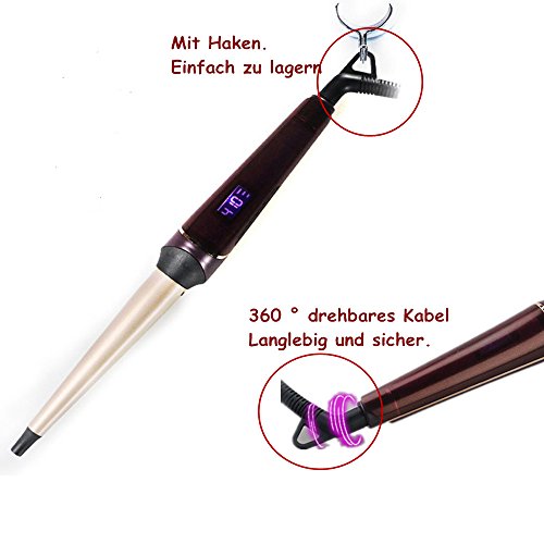 Triplespark Ceramica Cono Hair Curler - 1/2 ' a 1 ' Capelli Curling Cono Stick con Display LCD