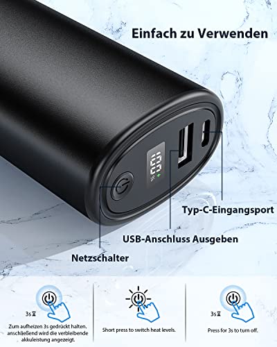 TriPole 10000 mAh, scaldamani ricaricabile, 3 secondi, riscaldamento rapido, 40 - 55 °C, power bank portatile, 3 livelli di calore e riscaldamento a 360°, golf, campeggio