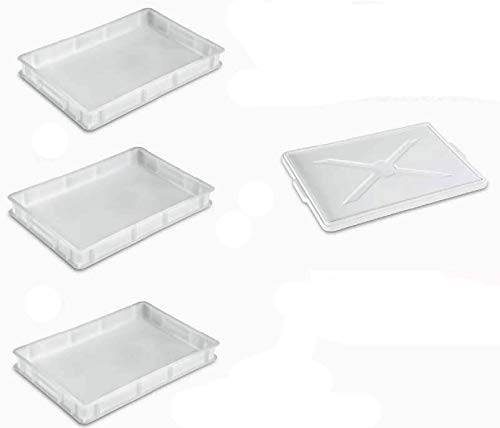 Tris Cassetta Portaimpasto Service 30x40xh10 cm, Sovrapponibili con 1 Coperchio contenitore conservazione lievitazione impasto pizza para spruzzi fischiotto omaggio