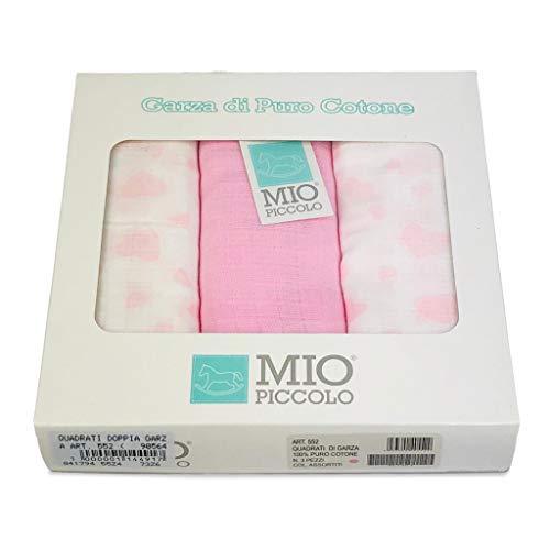 Set tris quadrati in garza di puro cotone Mio Piccolo per neonato 3 pezzi 0794 Rosa Unica
