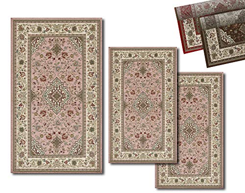 Tris Tappeto Velour con Antiscivolo Classic Tabriz Rosa Cipria Camera da Letto Scendiletto