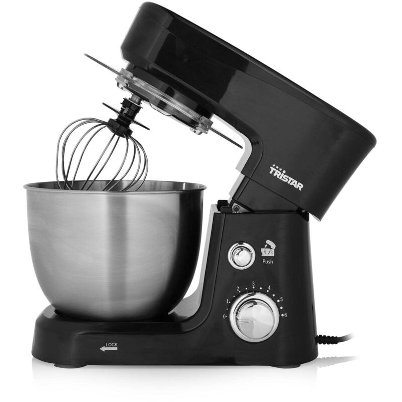 Dettagli tecnici Capacità effettiva 3.5 l Colore Nero Materiale Plastica Materiale (contenitore) Acciaio inox Numero stadi di commutazione 6 Potenza 700 W Tipo prodotto Robot da cucina Robot da cucina TriStar MX-4830 - capacità 3,5 l, 3 accessori, nero Siete un vero e proprio hobbista e potrebbe utilizzare un po' di aiuto in cucina? Allora il robot da cucina Tristar MX-4830 è proprio quello che fa per voi. Con i suoi tre ganci per impastare, questo robot da cucina multifunzionale può mescolare, impastare e mescolare. La spaziosa ciotola per agitatore ha una capacità di 3,5 l, in modo che questo robot da cucina sia perfetto per ogni appassionato di cottura.Diversi livelli di velocitàIl robot da cucina Tristar ha 6 impostazioni di velocità. È possibile adattare la velocità del frullatore a qualsiasi ricetta, in modo che la macchina possa mescolare rapidamente tutti gli ingredienti e impastare in un impasto liscio. Gli accessori di questo robot da cucina includono tre diversi ganci per