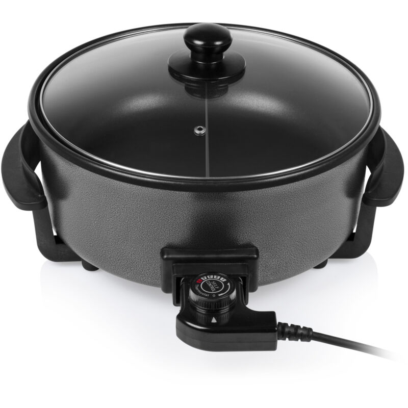Tristar PZ-9135 Padella multifunzione XL. Forma: Rotondo, Colore del prodotto: Nero, Materiale della scocca: Acciaio. Potenza: 1500 W, Tipo di presa: Tipo F. Diametro: 30 cm, Altezza: 90 mm, Peso: 2 kg. Quantità per container intermodale (20 piedi): 1360 pezzo(i), Quantità per container intermodale (40 piedi): 2800 pezzo(i), Quantità per contenitore intermodale (40pd, HC): 3300 pezzo(i)