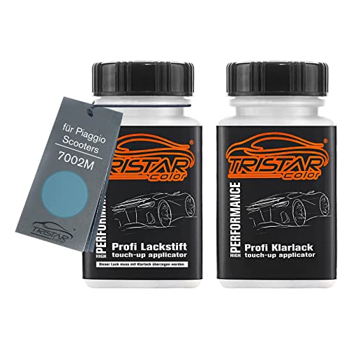 TRISTARcolor Vernice per moto Kit stilo di ritocco per Piaggio Scooters 7002M Azzurro Metallic Vernice di base vernice trasparente ognuno 50ml