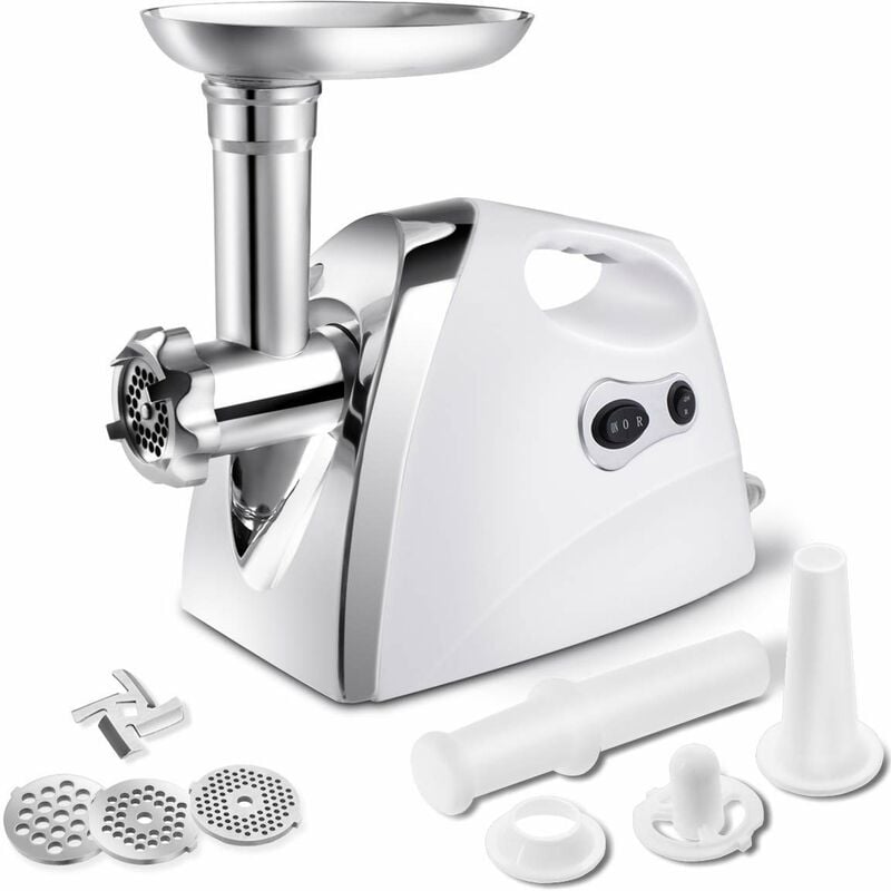 INFORMAZIONI Motore potente: Tritacarne da 1200 W in grado può gestire 1,2 kg di carne alla volta. Vari accessori tra cui slider alimentare per soddisfare le Vostre diverse esigenze. Pratico: Inserti intercambiabili. I pezzi di carne possono essere macinati in 3 diverse modalità: fine, media o spessa. Funzionamento facile: Tritacarne con prestazioni di alta qualità, poco rumoroso e buona ventilazione. 3 piastre di macinazione per scegliere le modalità di taglio. Modalità “On-O-R”, selezionare “On” per avviare la macchina. Facile da pulire: Facile da smontare e rimontare dopo l'uso per rendere la pulizia più agevole. Regolazione inversa “On-O-R”, scegliere la modalità “R” per rimuovere i residui più ingombranti. Versatile: Godetevi le molte opzioni nella preparazione del cibo. Con gli accessori aggiuntivi si possono preparare ottimi spiedini e salsicce per la prossima grigliata. Descrizione: Il tritacarne combina grandi prestazioni con un design professionale e un ingranaggio in