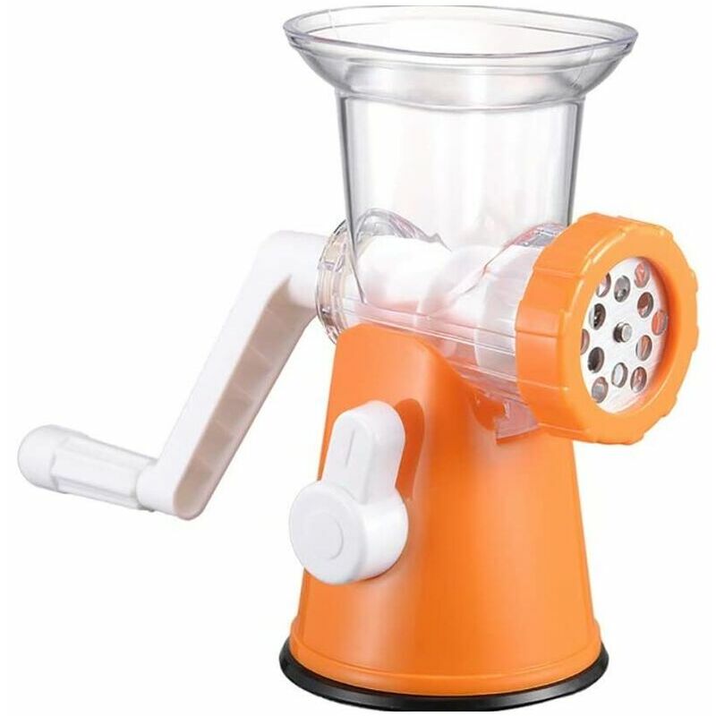 Descrizione del prodotto Funzionamento semplice: basta mettere la carne nel tritacarne, girare la manovella, non serve elettricità. Prepara facilmente carne macinata, pasta all'aglio, ecc. sempre e ovunque.Utilizzando materiali di alta qualità, il corpo del tritacarne è realizzato in materiale PP alimentare e lame in acciaio inossidabile per garantire prestazioni eccellenti, lunga durata e un'alimentazione sicura. Una varietà di accessori viene fornita con un tubo per clistere, due per macinare dischi per scopi diversi e uno spingitore per guidare il cibo nella macchina. Resta fermo quando è in uso: c'è una potente base di aspirazione nella parte inferiore e il pulsante rotante dal rilascio al blocco può tenere il macinino saldamente e stabilmente la scrivania durante l'uso. Goditi facilmente il cibo fresco: questo tritatutto manuale multifunzionale può macinare carne, pepe macinato/aglio/zenzero in modo semplice ed efficiente, ecc. Funzionamento semplice: tutto ciò di cui hai bisogno