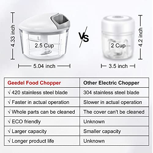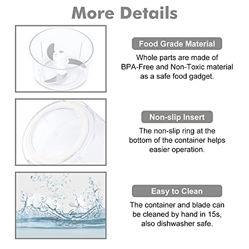 Caratteristiche di cui hai bisogno - Soddisfa le tue diverse esigenze di tritatura. Basta fare tutto con diversi tiri, 1-5 volte per il cibo grossolanamente, 6-10 per il medio, 11-20 per il fine e 20+ per le puree extra fini o liquide. Capacità di 600 ml, più grande di altri tritatutto elettrici.