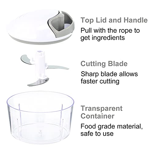 Tritatutto Manuale, Facile Da Pulire Trita Verdure, Tritatutto a Corda Per Verdura, Cipolla, Frutta, Insalata, Prezzemolo, ecc - 600 ml