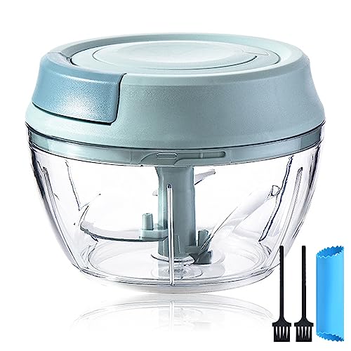 Tritatutto Manuale,Mini Tritacarne Manuale 500ml,Tritatutto a Corda,Facile Pulizia e Sicuro Tritatutto Per Verdure,Trita Verdure Manuale Per Ketchup Cipolla Aglio Carne,Trita Verdure Manuale(Blu)