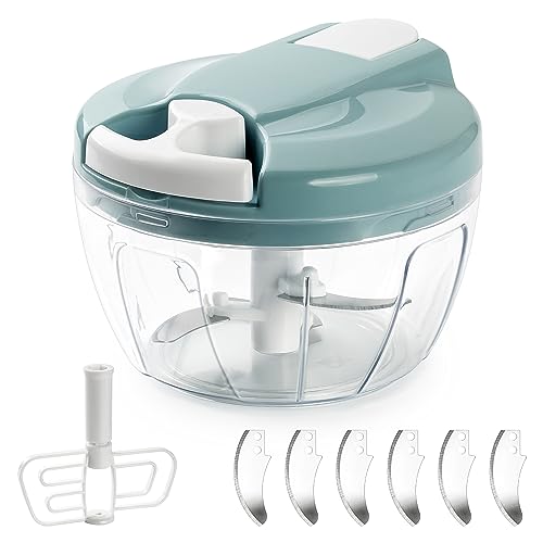 Tritatutto Manuale, Taglia Cipolla Manuale con 6 Lame e Frusta, 520ml Tritatutto Manuale a Corda per Cipolla Insalata, Pesto, prezzemolo