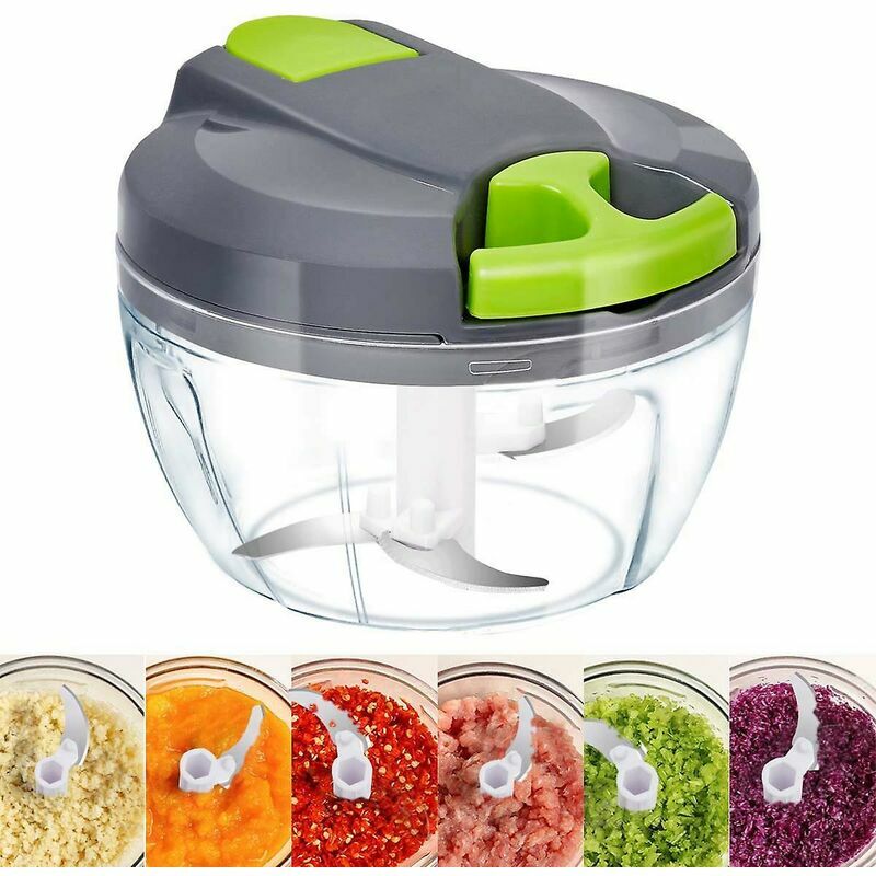 Questo robot da cucina manuale è realizzato in materiale ABS e acciaio inossidabile, ecologico e non dannoso per la salute. Questo tritatutto manuale è progettato per tritare/frullare perfettamente senza tritare e frullare verdure, frutta, noci ed erbe aromatiche. Dispone di una lama affilata in acciaio inossidabile per tagliare/sminuzzare in modo rapido e uniforme, un comodo coperchio con impugnatura morbida, una base antiscivolo, un comodo cordoncino e un ampio manico. Nessuna alimentazione: affetta le verdure, frutta e noci in pochi secondi da grossolana a fine. Risultati costanti: il meccanismo di trazione girevole è facile da usare e offre un maggiore comfort per l'utente. Lame in acciaio inossidabile resistenti: macinano quasi tutti gli alimenti in modo rapido e semplice, ideali anche per mescolare e mescolare salse e salse. < li>Più stabile: il contenitore trasparente ha una base antiscivolo, che facilita la lettura del grado di macinatura. 3 lame: acciaio inossidabile 304