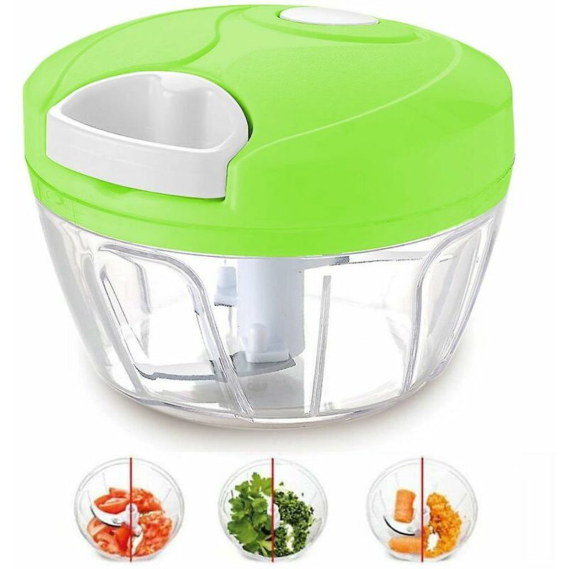 Descrizione del prodotto Dimensioni: 8,5 x 12,5 x 8 cm. Materiale: ABS + Ps + acciaio inossidabile 304 + silicone. Colore: bianco, verde 1.?RISPARMIO DI TEMPO E MULTIFUNZIONALE?: Questo veloce trituratore manuale ti aiuterà a tagliare verdure, frutta e noci. Il tritaaglio fa risparmiare molto tempo in cucina. Se metti il cibo nella ciotola e tiri la corda una volta, puoi tagliare il cibo 15 volte. Nemmeno la cipolla ti farà lacrimare gli occhi. Puoi anche usarlo per preparare salse e chutney. Questo tritatutto manuale non solo trita frutta e verdura, ma può essere utilizzato anche come tritacarne e tritacarne per tritare carne disossata e fiocchi di latte. 2.?STRONG amp;