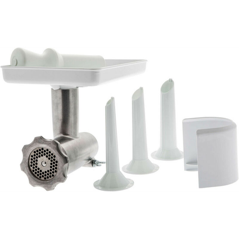 Tritacarne 920900057 per robot Ankarsrum AKM6230. Tipo di prodotto: tritatutto. Tipo: accessori per robot da cucina e frullatore. Categoria: Cucina. Numero di unità: 1. Marca compatibile: Ankarsrum. Compatibilità: Robot AKM 6230. Colore bianco. Colore/i secondario/i: Acciaio inossidabile. Accessori inclusi: corpo tritacarne, 3 attacchi salsicce 10/20/25 mm, vassoio di alimentazione, spingitore, griglia 4,5 mm, paraspruzzi.